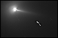 | Hyakutake 3/25/96 with 50mm lens and CB245 | Hyakutake 4/25/96 Close up of head with 8" f6 Newtonian and CB245 - note the shells in the coma and the strong jet with possible fragments | NGC3628 in Leo with 8" f6 and CB245. | |
