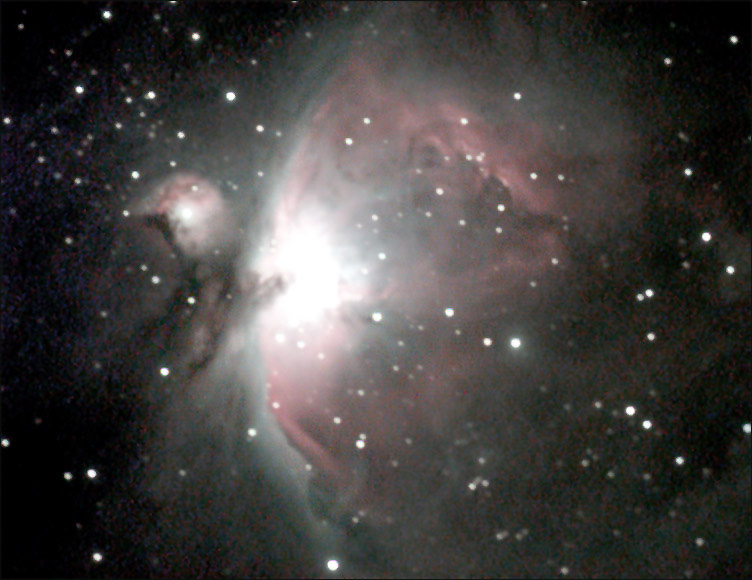 | North American Nebula, 125mm telephoto with MX-7C. 10 2 minute unguided exposures. Stars are blobby due to lack of filtering. | M42 - The Great Nebula in Orion. MX7C on Maksutov 500mm telephoto lens. | Mars post opposition September 12th, 2003. 120 frame at 0.1 seconds using MX7c on Meade 125 Maksutov. Luminance stacked in AstroArt and processed in PhotoShop. | Mars post opposition September 28th, 2003. 16 frames at 0.1 seconds using MX7c on Meade 125 Maksutov. Luminance stacked in AstroArt and processed in PhotoShop. Smaller apparent diameter and a much smaller South polar cap |