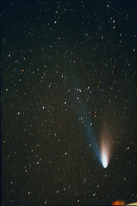| Hale-Bopp through the fog on Fremont Peak, April 4, 1997 |